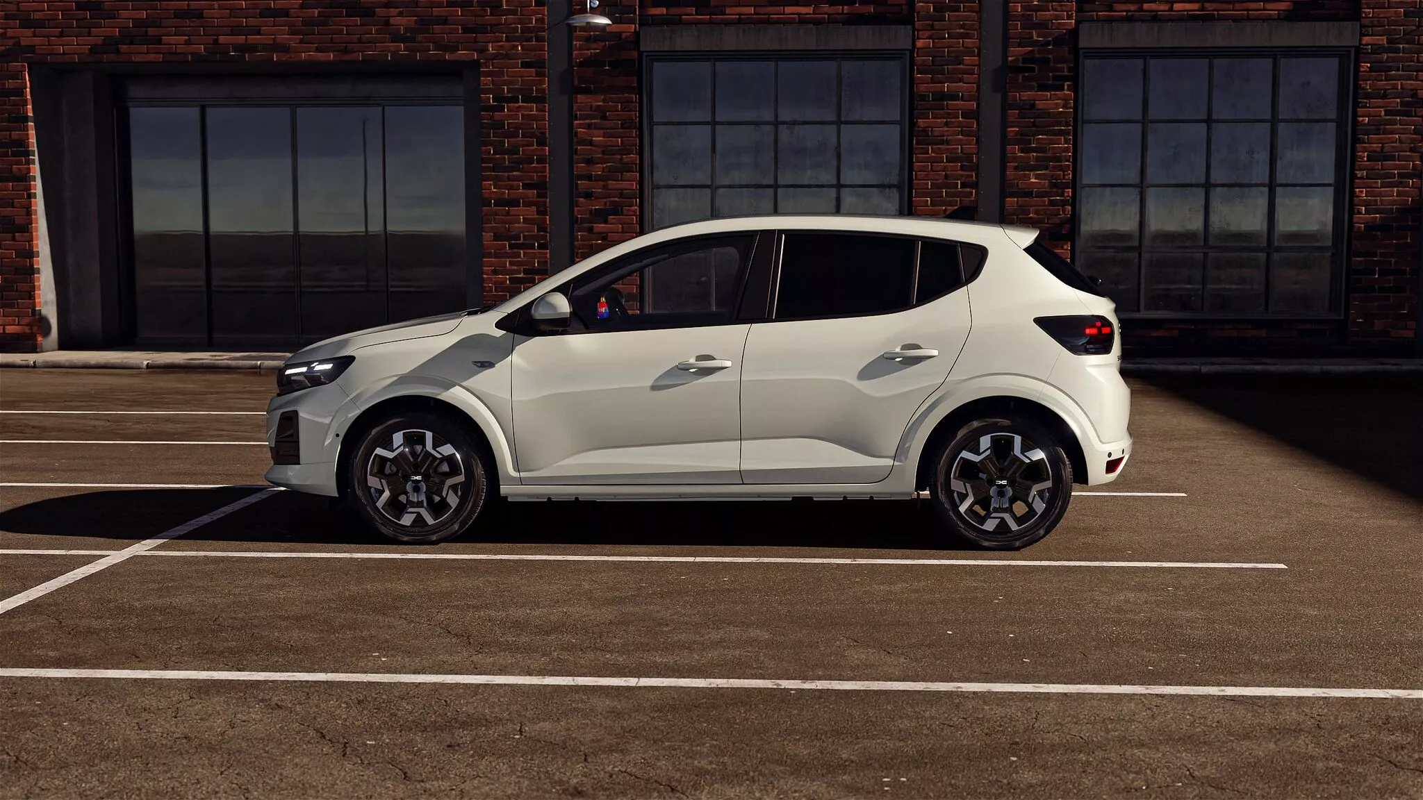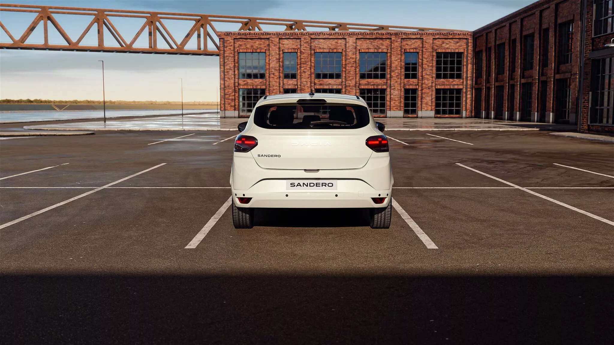El Nuevo Sandero presenta un estilo más expresivo y robusto. Su frontal rediseñado incorpora calandra y paragolpes con efecto píxel, así como una nueva firma luminosa en forma de «T» invertida que refuerza la identidad visual de Dacia. El perfil muestra proporciones equilibradas y un carácter sólido, acentuado por llantas de 16” (40,64 cm). En la parte trasera, las nuevas luces integradas en el portón aportan armonía y presencia.