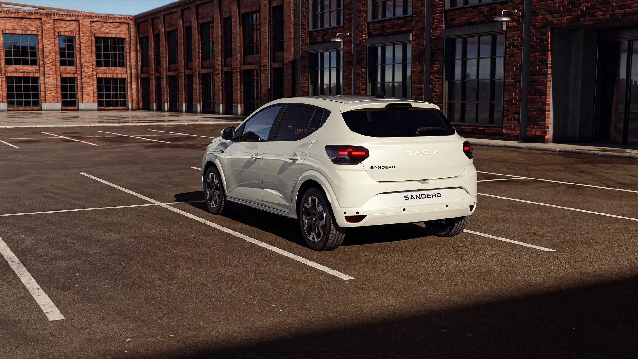 El Nuevo Sandero presenta un estilo más expresivo y robusto. Su frontal rediseñado incorpora calandra y paragolpes con efecto píxel, así como una nueva firma luminosa en forma de «T» invertida que refuerza la identidad visual de Dacia. El perfil muestra proporciones equilibradas y un carácter sólido, acentuado por llantas de 16” (40,64 cm). En la parte trasera, las nuevas luces integradas en el portón aportan armonía y presencia.